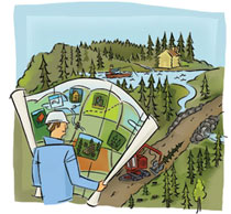 Au Québec, la forêt fait partie de nos vies depuis toujours : été comme hiver, on y pratique toute une gamme d’activités. Environ 90 % des forêts québécoises sont publiques, c’est-à-dire qu’elles appartiennent aux Québécoises et aux Québécois. En grande majorité, elles font partie de la forêt boréale, qu’on appelle aussi la forêt résineuse. Composée surtout de conifères comme l’épinette noire, le pin gris, le sapin et le mélèze, la forêt boréale est la principale source de matière première pour la fabrication du papier et du bois d’oeuvre. Elle constitue donc un avoir collectif précieux, car elle génère des emplois et procure des biens à la population. L’industrie forestière joue un rôle de premier plan dans la gestion de ce patrimoine : elle s’occupe de l’aménagement durable des forêts et de la récolte du bois.